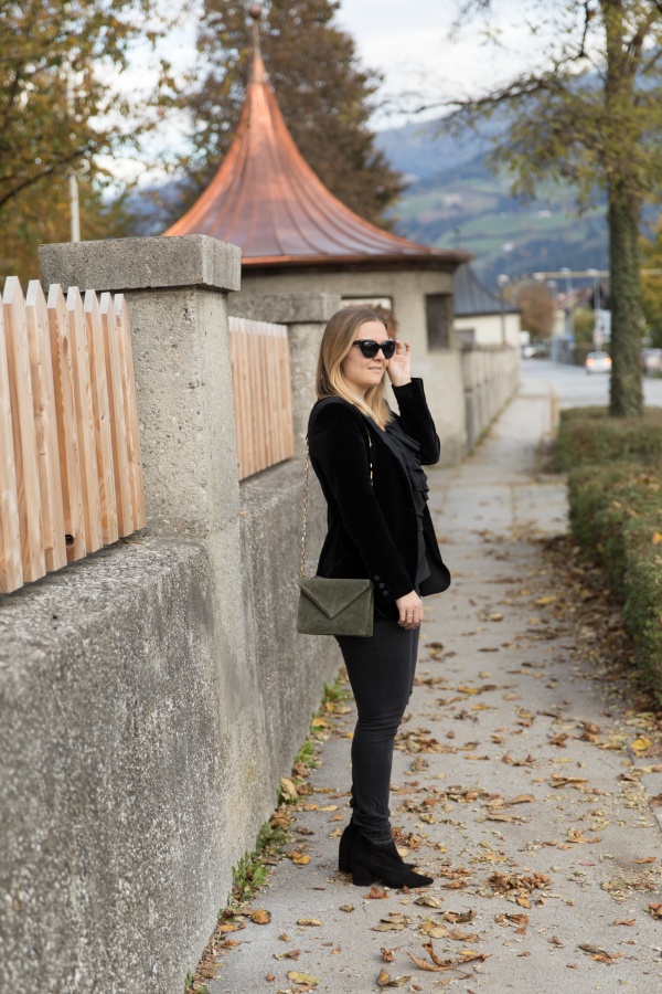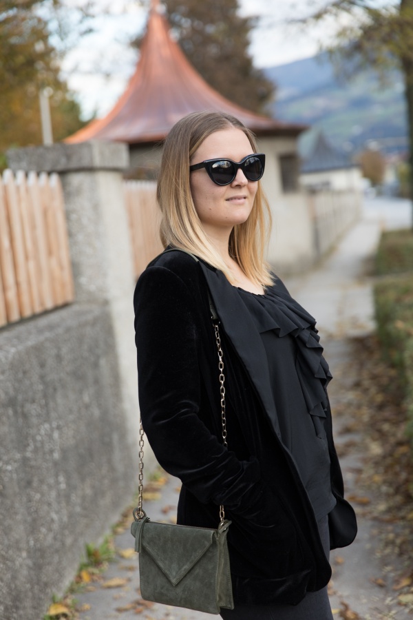 Rüschen sind diesen Herbst hoch im Trend, daher wollten wir das Thema in unserer 7 Ways To Wear Reihe gleich aufgreifen und euch sieben unterschiedliche Styles damit zeigen. Rüschen können schnell sehr verspielt und lieblich wirken, daher habe ich mich für ein black-all-over Outfit entschieden um dem Ganzen eine etwas herbstlichere Note zu geben. Dieses schwarze Rüschentop habe ich schon vor zwei Jahren gekauft und euch bereits bei diesem Outfit Post mit pinker Tasche und offenen Schuhe gezeigt. Wie ihr seht kann man Rüschen auch getrost im Herbst tragen z.B. mit einer coolen Lederjacke oder auch einem flauschigen Cardigan und man erzielt einen komplett anderen Stil. Ich bin schon gespannt wie die Mädels Rüschen herbstlich stylen - unten habe ich euch wie immer alle verlinkt also schaut vorbei.